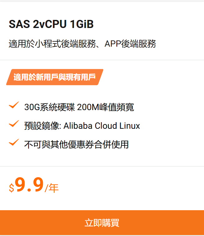 最近撿到了一台阿里雲國際的VPS,規格是這樣的