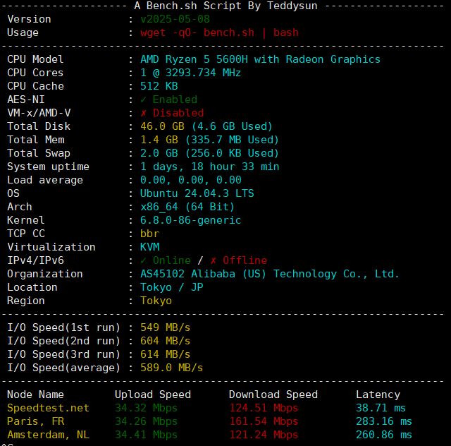 然後給我本機VM接入後,就得到一台還不錯的日本VPS了